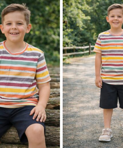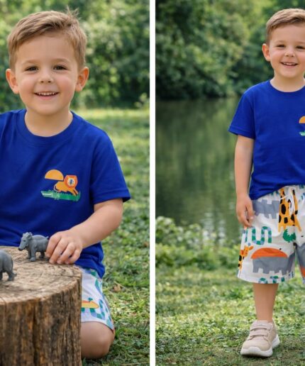 Conjunto infantil confeccionado em viscose pré-lavada, proporcionando um toque macio, leveza e muito conforto para o dia a dia.