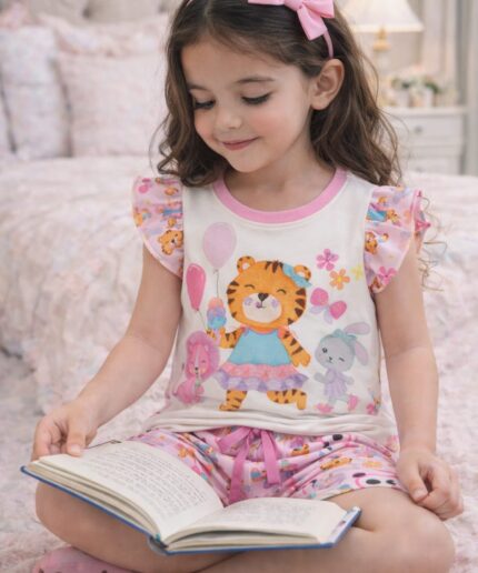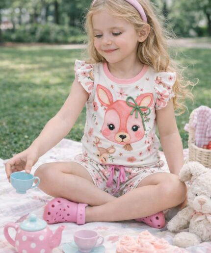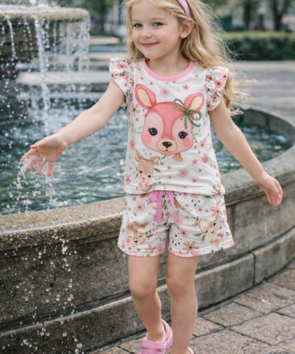 Conjunto infantil confeccionado em malha crepe, tecido leve, macio e confortável, ideal para o dia a dia das pequenas.