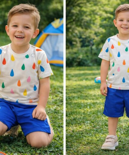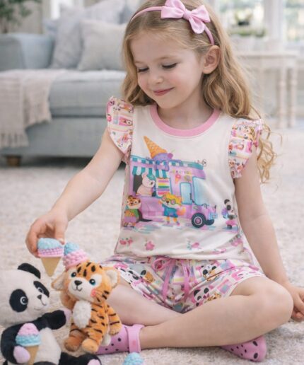 Conjunto infantil confeccionado em crepe alfaiataria com toque de seda e estampa digital, trazendo leveza, sofisticação e um caimento impecável.