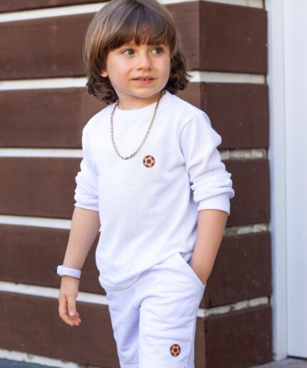 Conjunto infantil confeccionado em moletinho estampado, proporcionando conforto, maciez e um excelente caimento para o dia a dia.