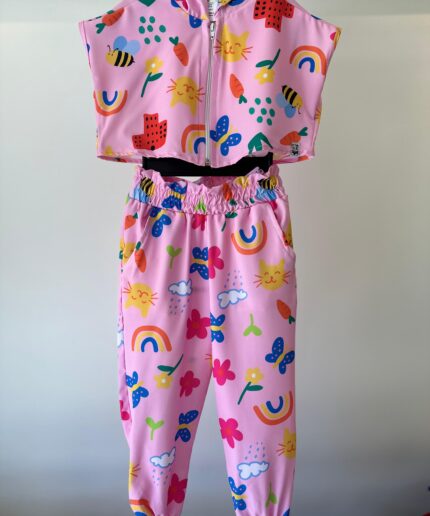 Conjunto infantil confeccionado em crepe alfaiataria com estampa digital, com cores vivas e vibrantes que não desbotam, garantindo um visual marcante e cheio de estilo.