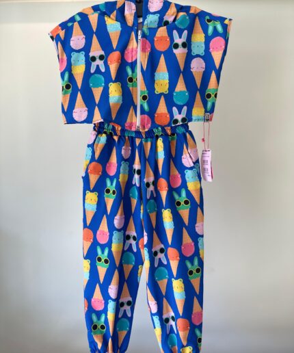 Conjunto infantil confeccionado em crepe sem elasticidade, com estampa digital em cores vivas e vibrantes, que valorizam ainda mais a peça.