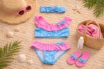 Composto por 3 peças: top, calcinha e lacinho de cabelo combinando, trazendo um visual delicado e encantador para as pequenas.