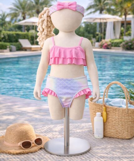 Composto por 2 peças: maiô e lacinho de cabelo combinando, trazendo um visual delicado e encantador para as pequenas.