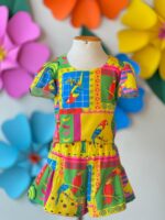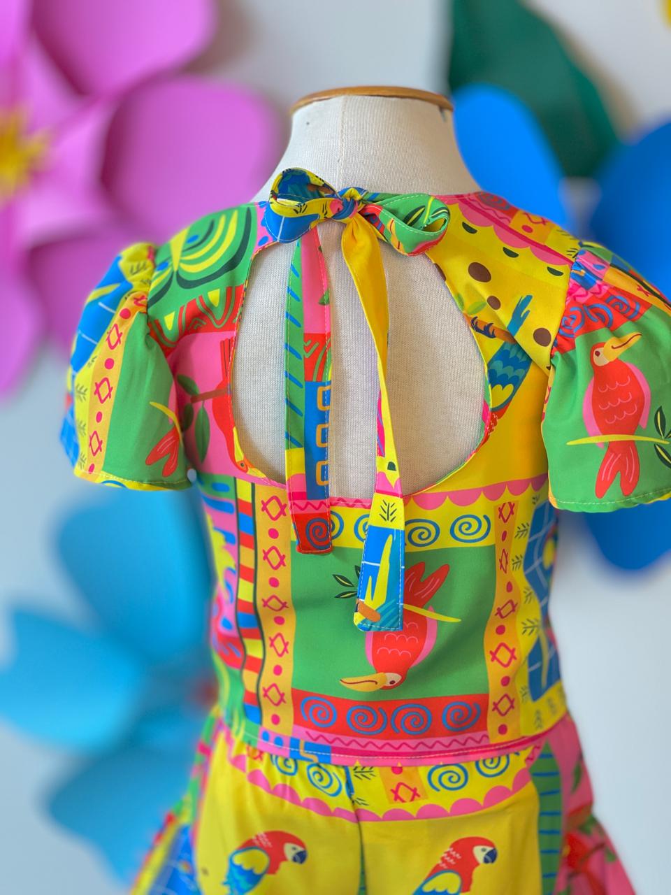 Conjunto infantil confeccionado em crepe alfaiataria com estampa digital, com cores vivas e vibrantes que não desbotam, garantindo um visual marcante e cheio de personalidade.