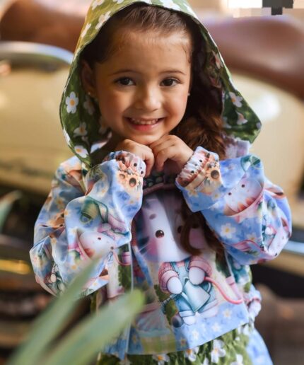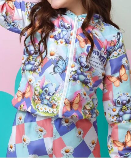 Conjunto infantil confeccionado em crepe alfaiataria com elastano e estampa digital, unindo sofisticação, conforto e excelente caimento.