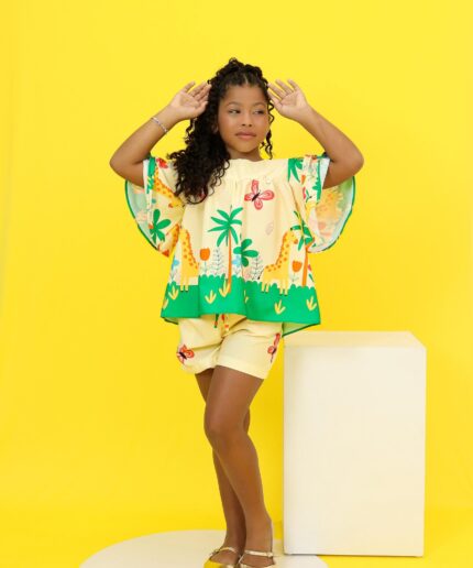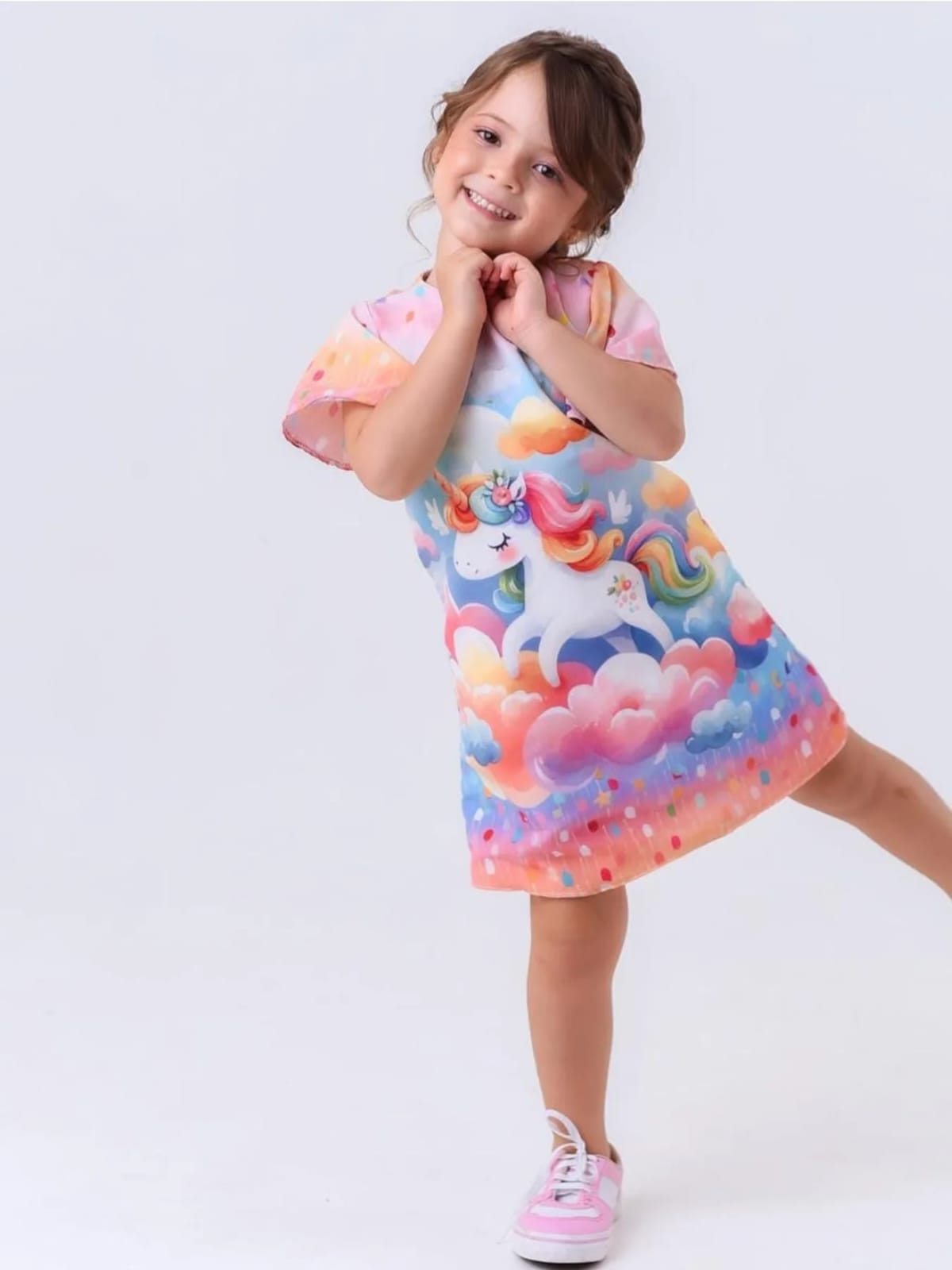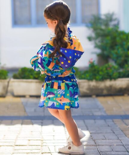 O vestido é confeccionado em crepe com toque de seco, com estampa digital de cores vivas e vibrantes. A peça é totalmente forrada (frente e costas), garantindo melhor acabamento, conforto e qualidade ao vestir.