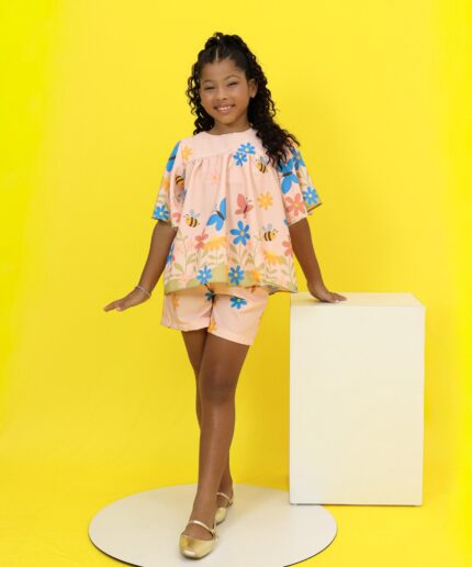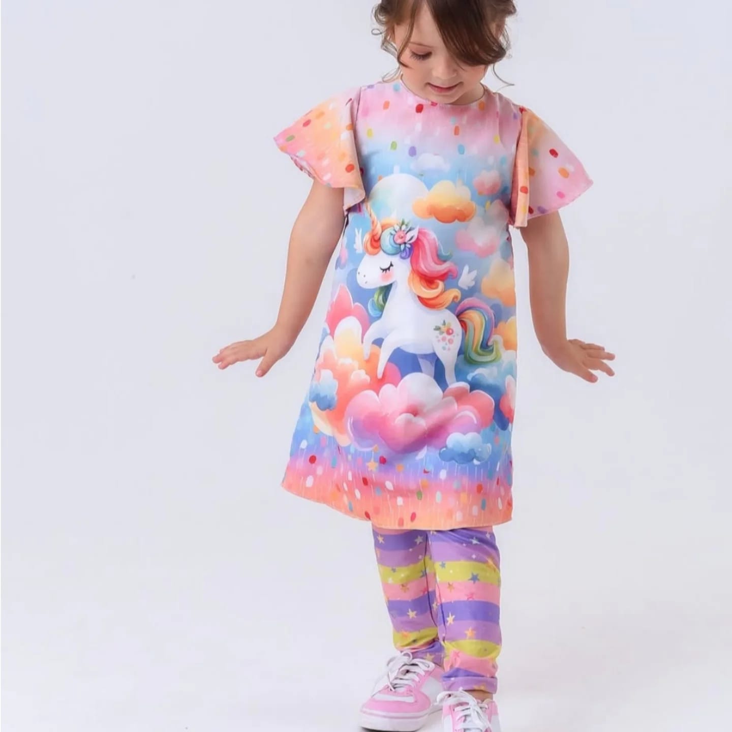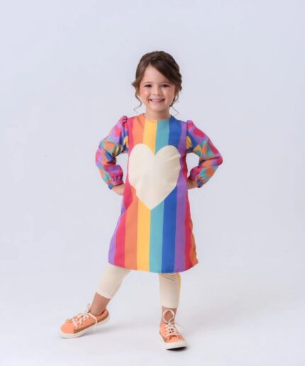 Conjunto infantil composto por vestido (que pode ser usado separadamente) + calça, acompanhado de maxi laço, formando um look completo, elegante e cheio de charme.