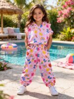 Conjunto infantil confeccionado em crepe alfaiataria com estampa digital, com cores vivas e vibrantes que não desbotam, garantindo um visual marcante e cheio de estilo.