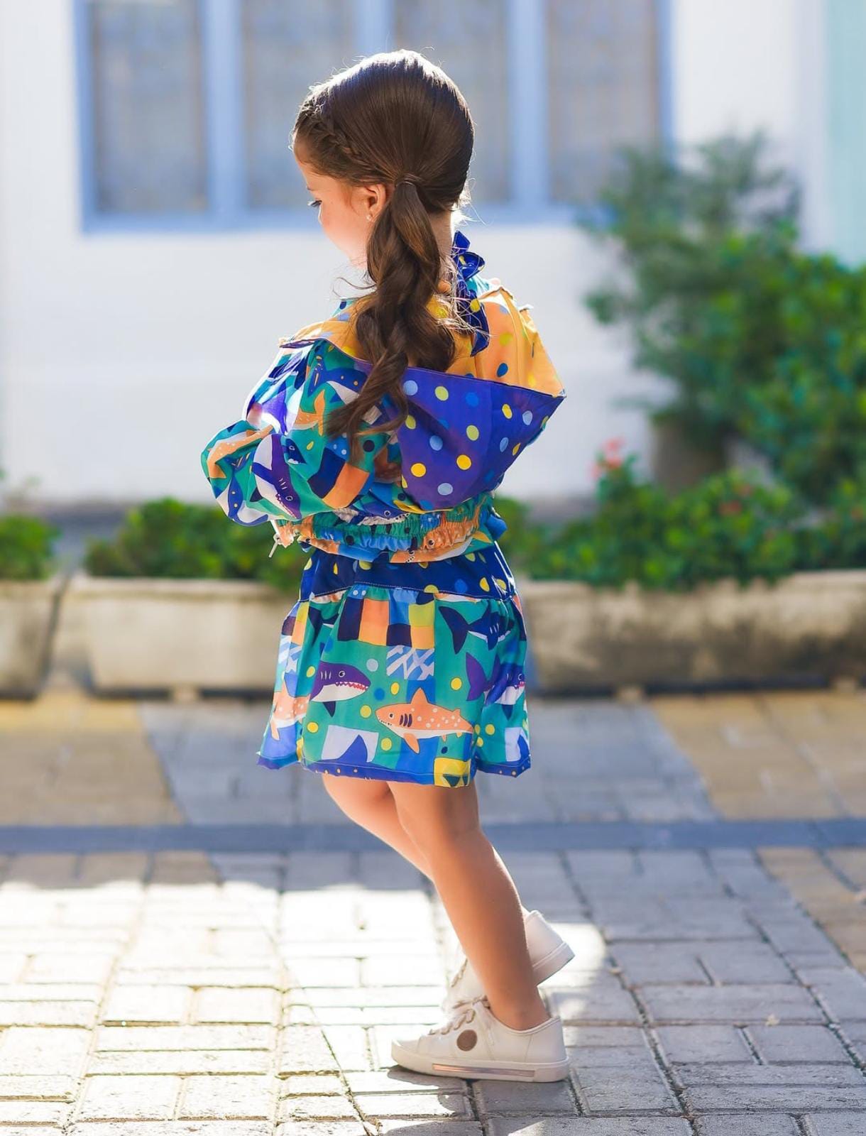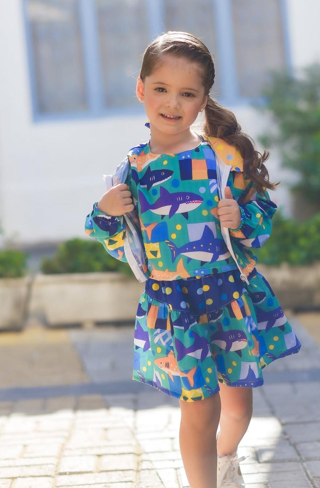 Modelo alegre e moderno, com estampa vibrante que valoriza a peça e chama atenção no ponto de venda.