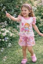 O tecido possui excelente elasticidade, garantindo conforto e liberdade de movimento para o dia a dia das pequenas.