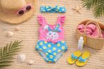 Composto por 2 peças: maiô e lacinho de cabelo combinando, trazendo um visual delicado e encantador para as pequenas.