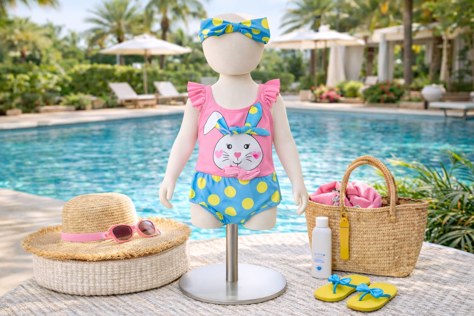 Perfeito para praia e piscina, unindo conforto, proteção e estilo lúdico.