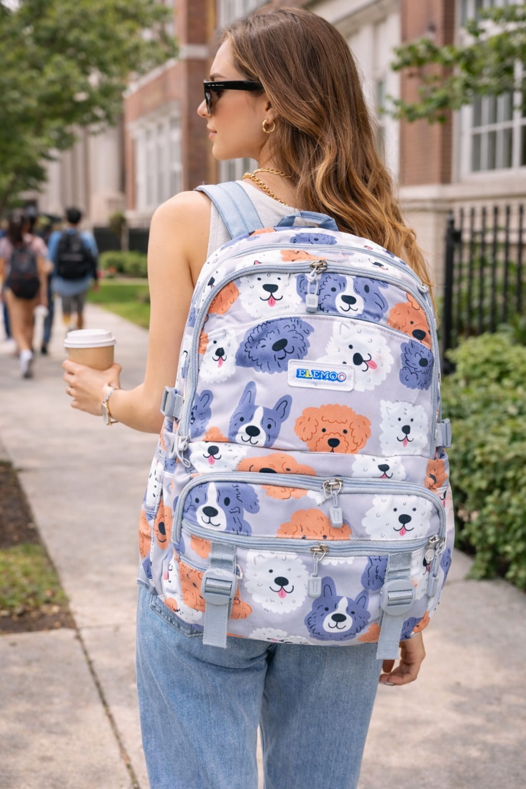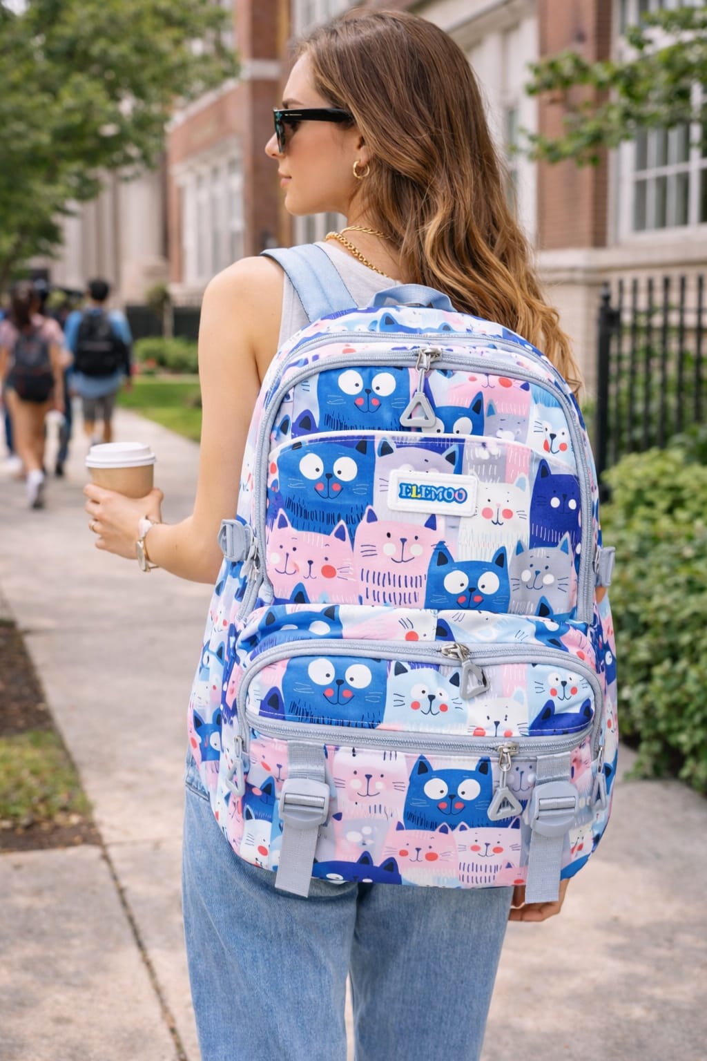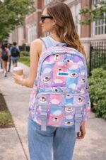 O modelo conta com três compartimentos grandes com fechamento em zíper, oferecendo amplo espaço interno para organização de materiais escolares, roupas ou acessórios. Na parte frontal, possui dois bolsos menores com zíper que facilitam o acesso a itens de uso rápido, além de dois bolsos laterais funcionais, ideais para garrafinhas, sucos ou pequenos objetos.