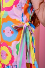 Vestido infantil com modelagem confortável e estampa floral lúdica multicolorida, ideal para looks alegres e cheios de personalidade.