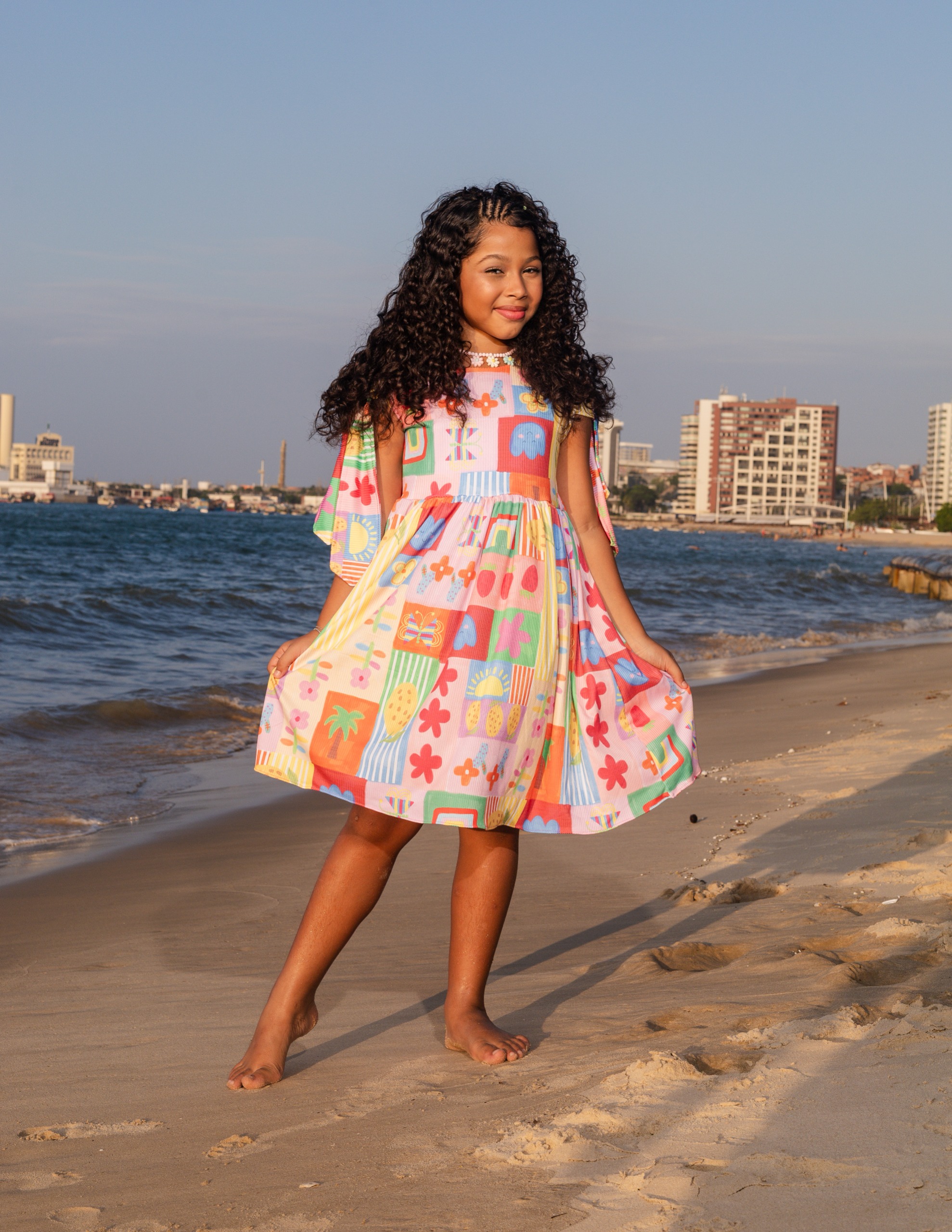 Vestido infantil confeccionado em canelado de algodão, proporcionando conforto, elasticidade e um ótimo caimento ao corpo.