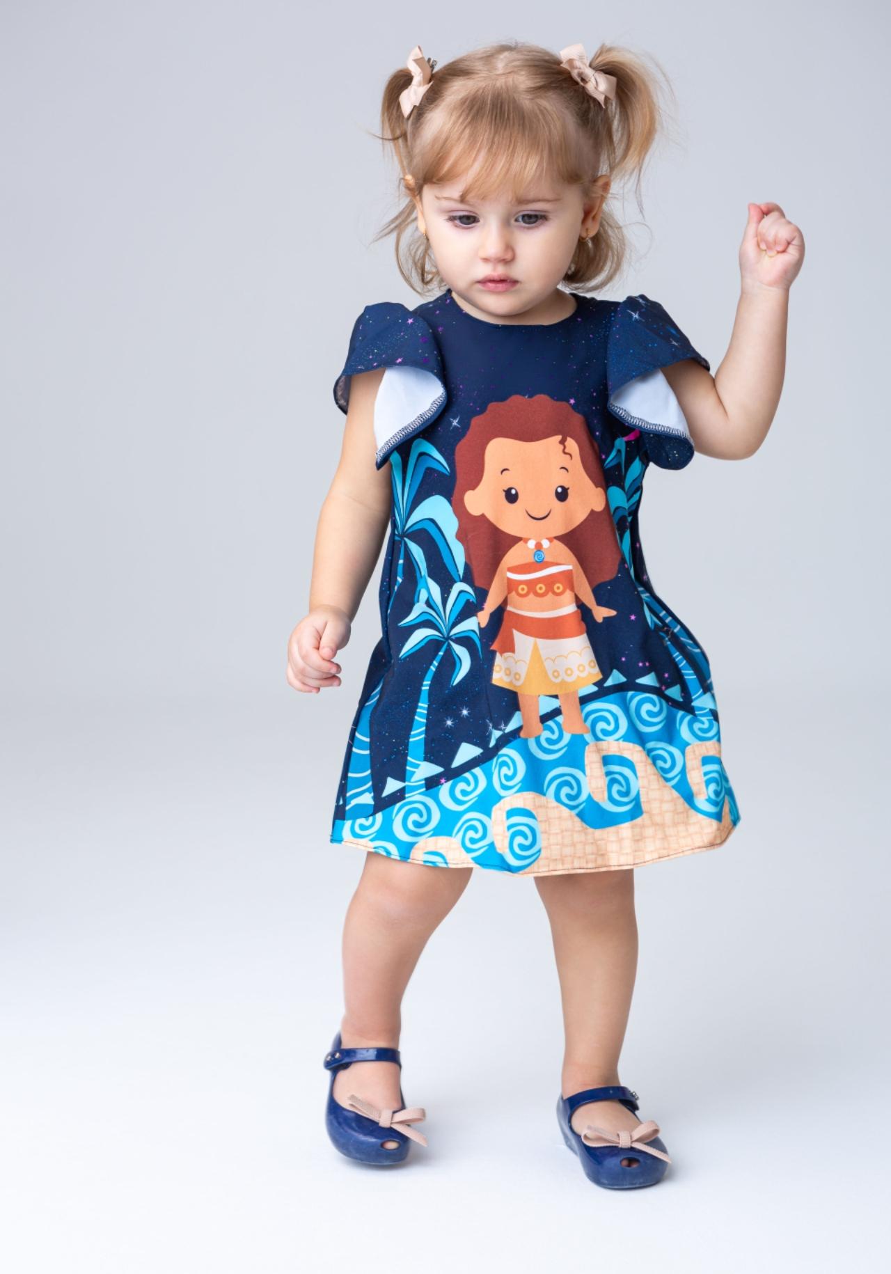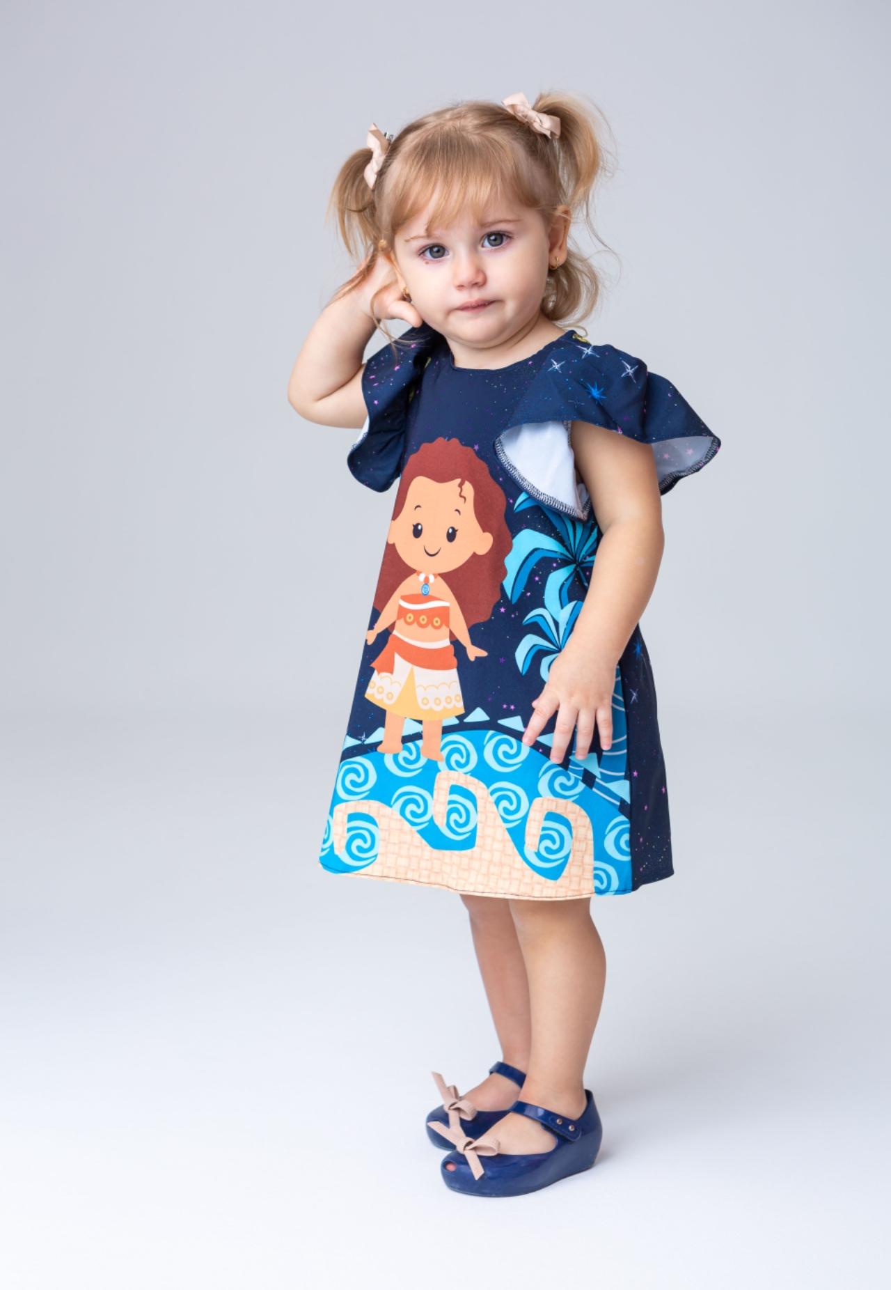 Vestido infantil confeccionado em tricoline 100% algodão com estampa digital.