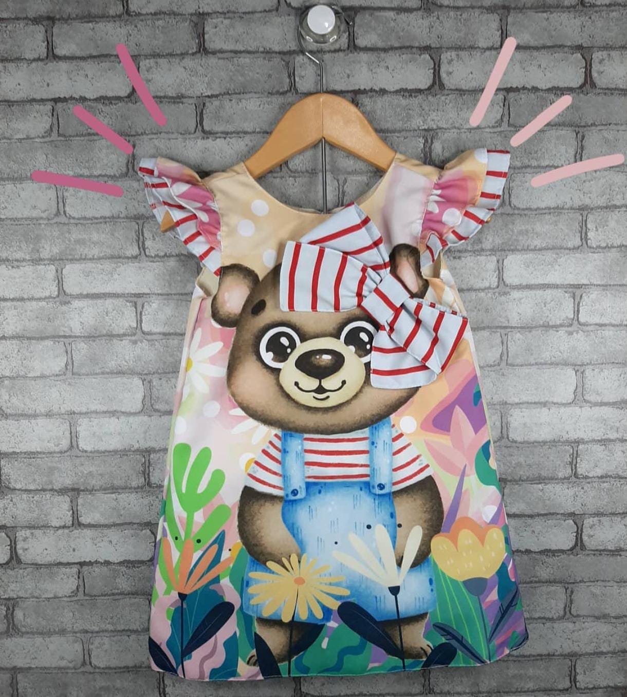 Possui forro na frente e nas costas, garantindo mais segurança e melhor acabamento. A peça se destaca pela aplicação de laço colorido, que traz um charme especial e um visual encantador.
