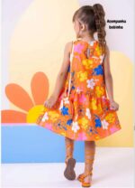 Vestido infantil confeccionado em crepe alfaiataria com toque de seda e estampa digital, trazendo leveza, elegância e um caimento impecável.