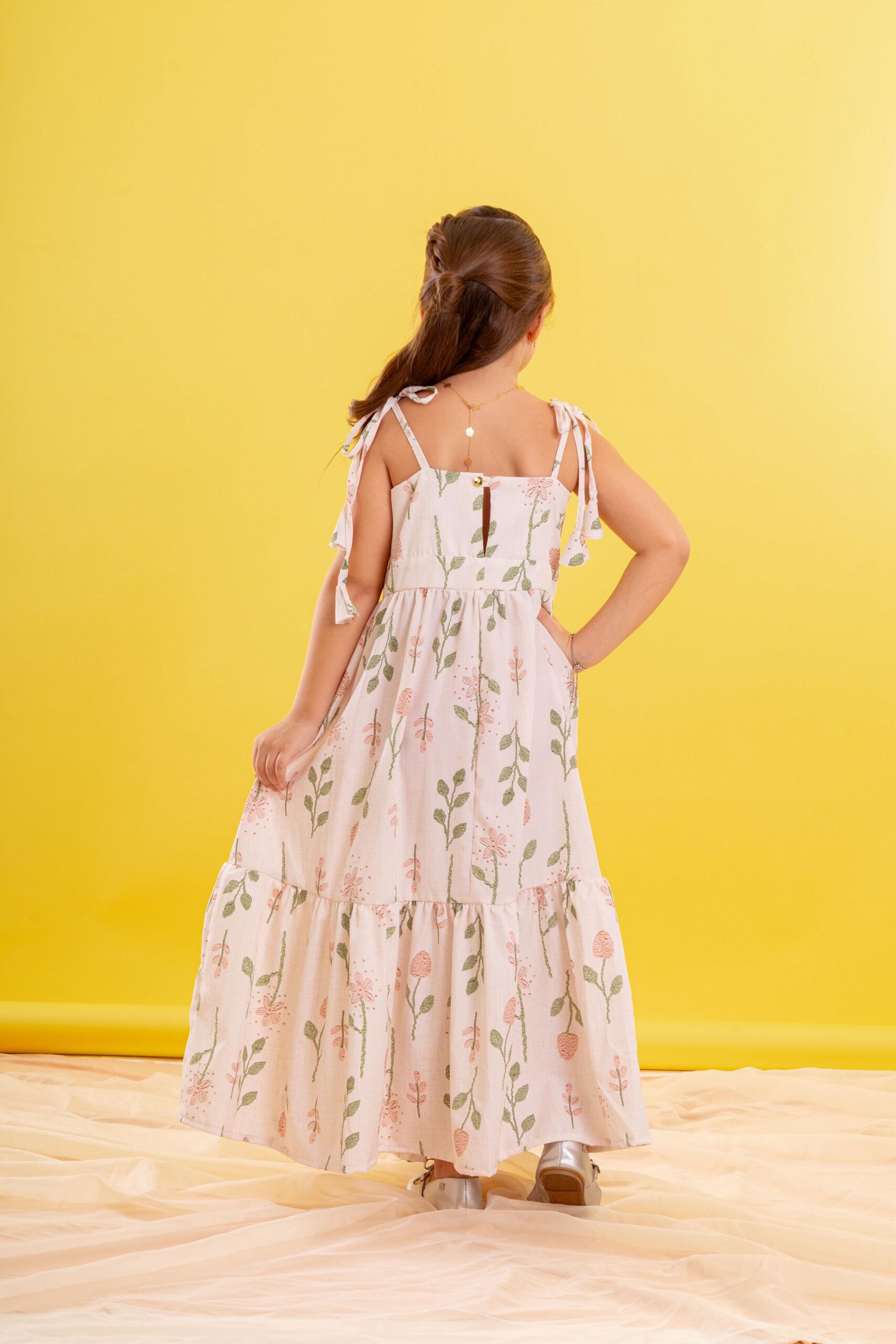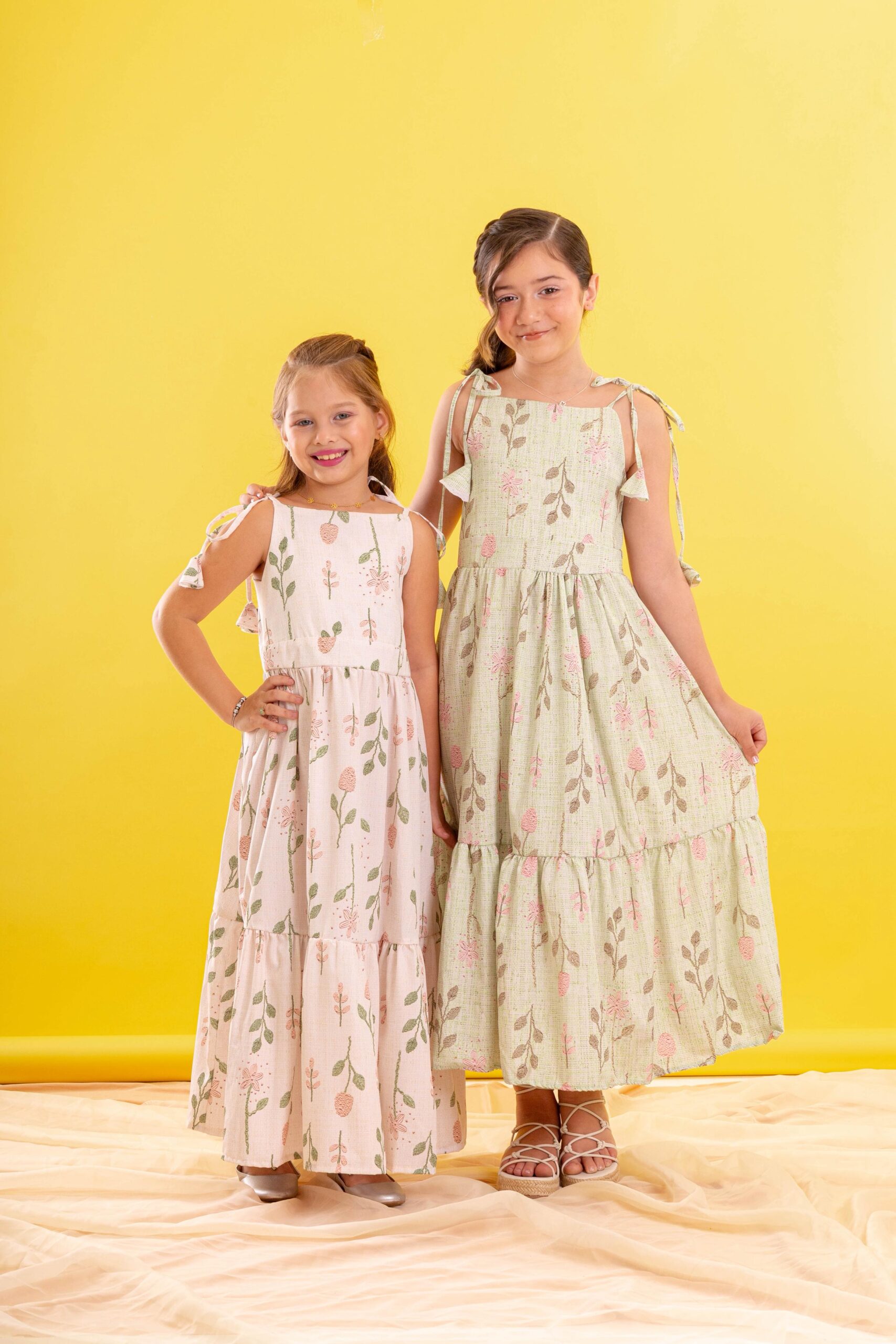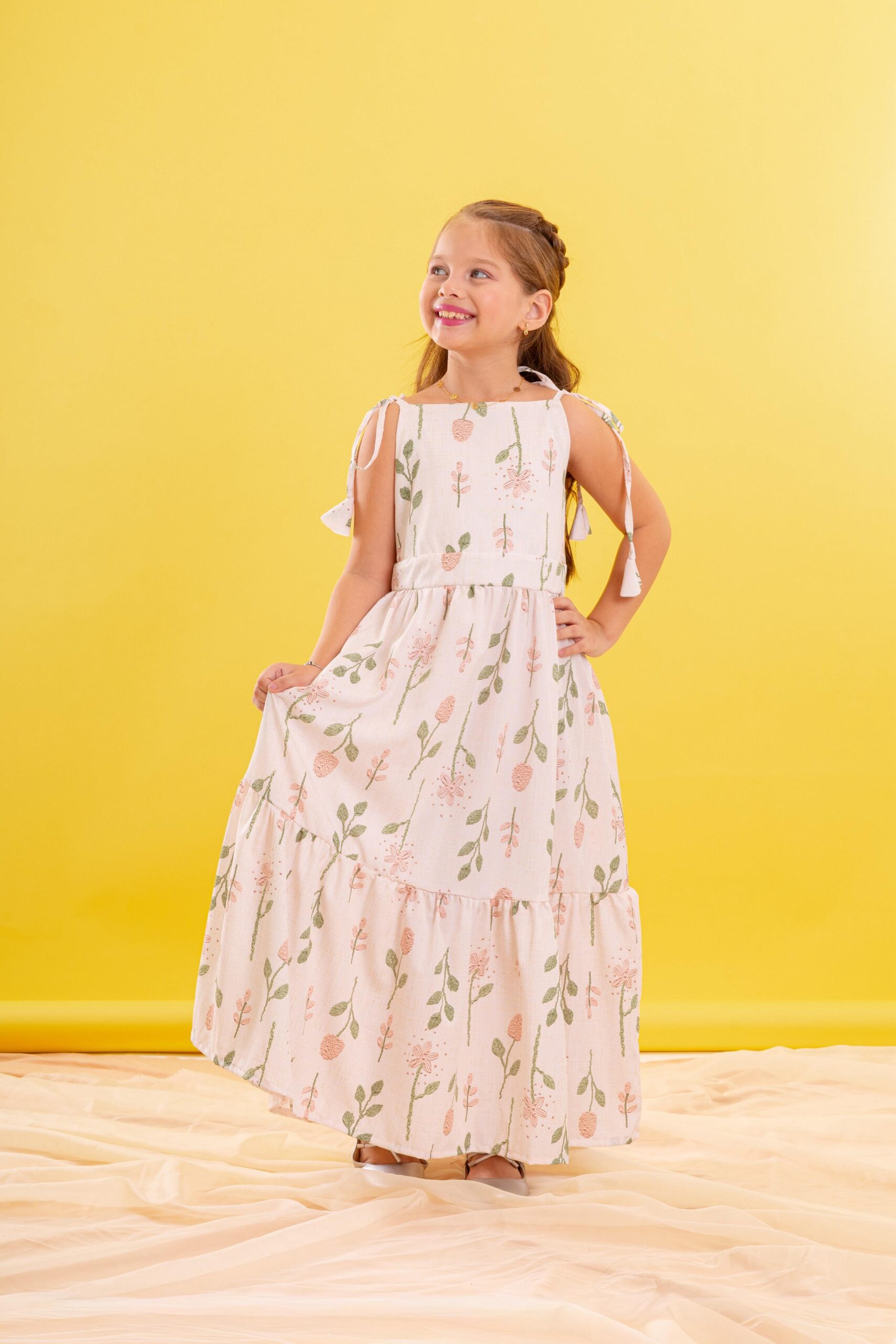 Vestido infantil confeccionado em viscose, tecido leve, fresco e confortável, ideal para dias mais quentes.