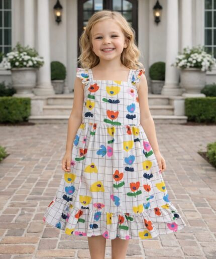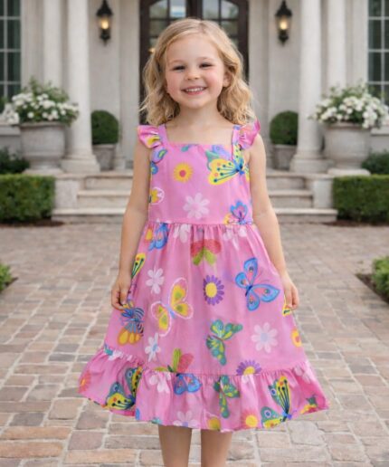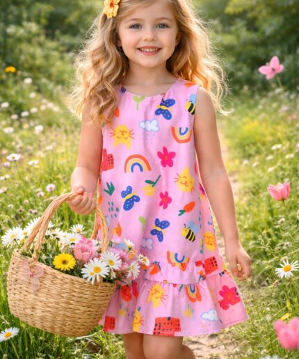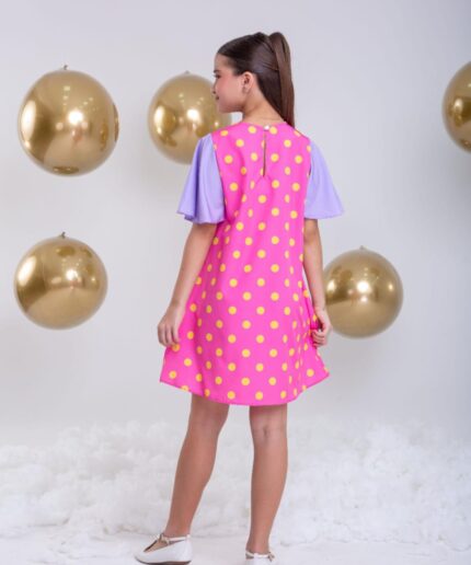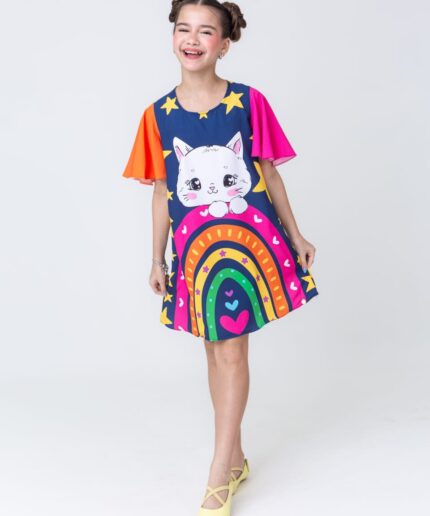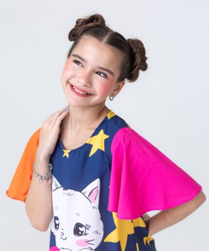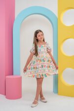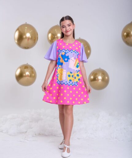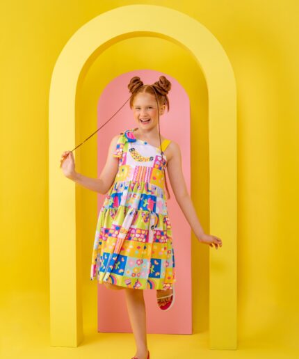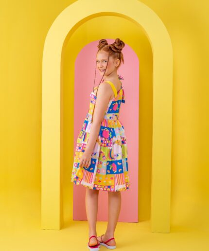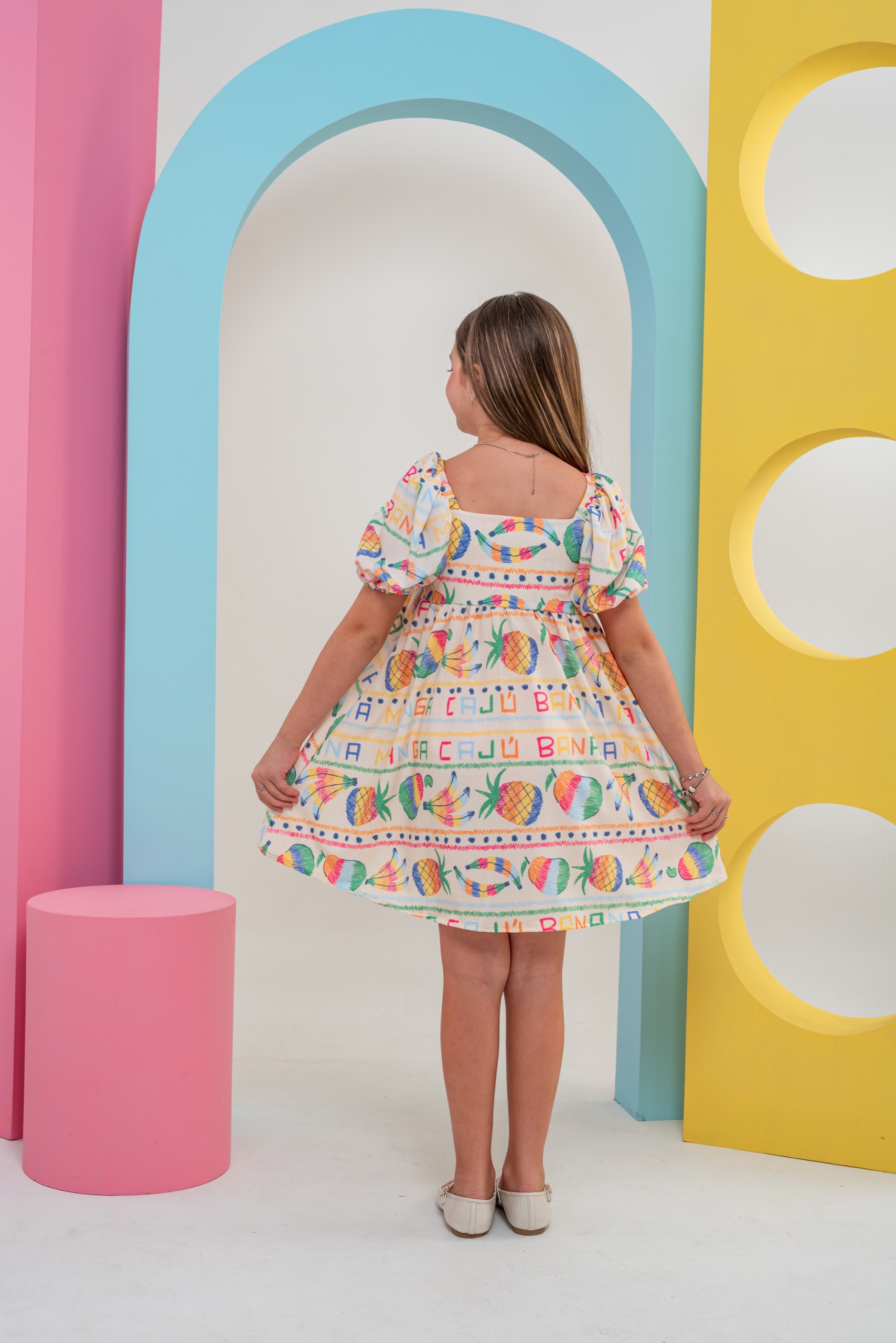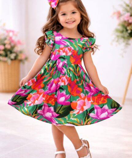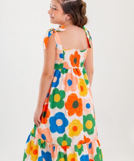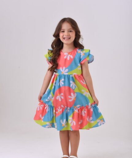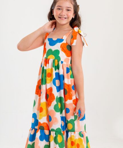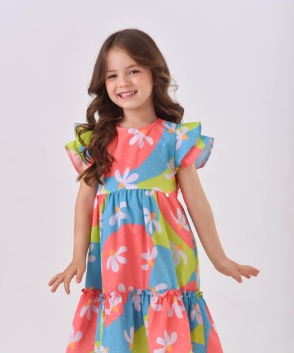 Vestido infantil confeccionado em crepe alfaiataria com toque de seda, tecido leve, estruturado e confortável. Possui estampa digital com cores vivas e vibrantes, que mantêm a beleza da peça por muito mais tempo.