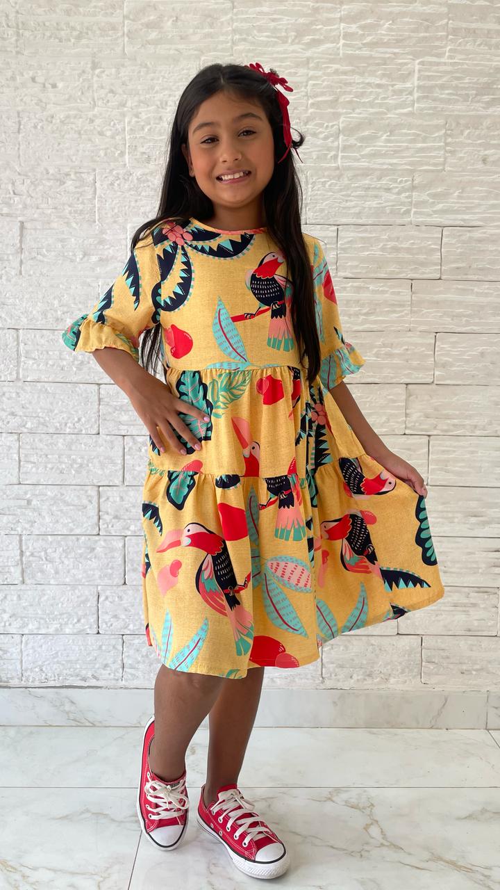 Vestido infantil confeccionado em viscose, tecido leve, macio e com excelente caimento, ideal para dias mais quentes.